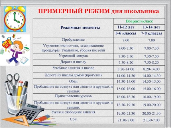 Основные моменты в расписании для школьников и их соблюдение: